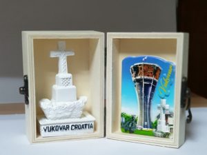 Drvena kutijica sa Vukovarskim vodotornjem ili bijelim križem